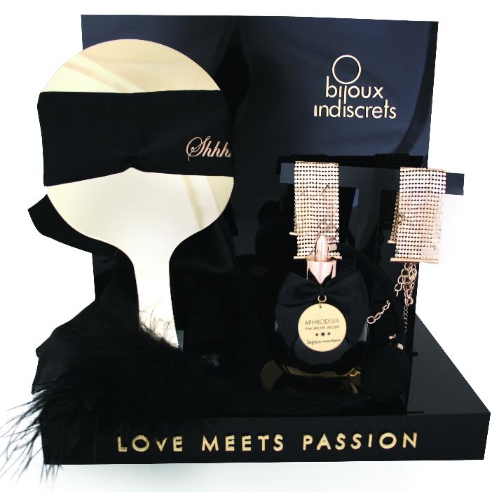 La primera exposición de los artículos más vendidos de Bijoux Indiscrets. Este expositor es perfecto para exponer los artículos más representativos de nuestra marca. Es muy flexible y puedes combinar esposas, accesorios, cosméticos y la mascarilla Shh, nuestro artículo más vendido, de diferentes formas. Una forma sencilla e impresionante de colocar nuestros artículos en tu punto de venta.